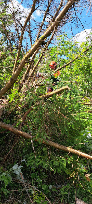 Baumfällarbeiten rund um die Vereinshütte am Steinhorst und auf den Wander- und Rettungszufahrten am 07.06.2024